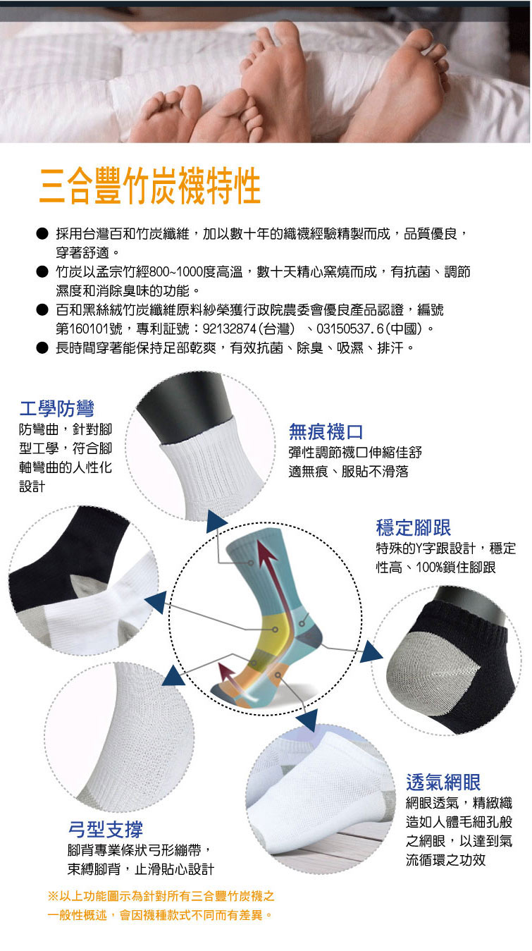 ● 材質:75%棉(竹炭紗)+16%聚酯纖維+6%彈性紗纖維+3%尼龍。