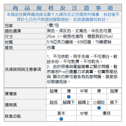 ● 尺寸:25cm (一般男性適用,襪管長約25cm)。