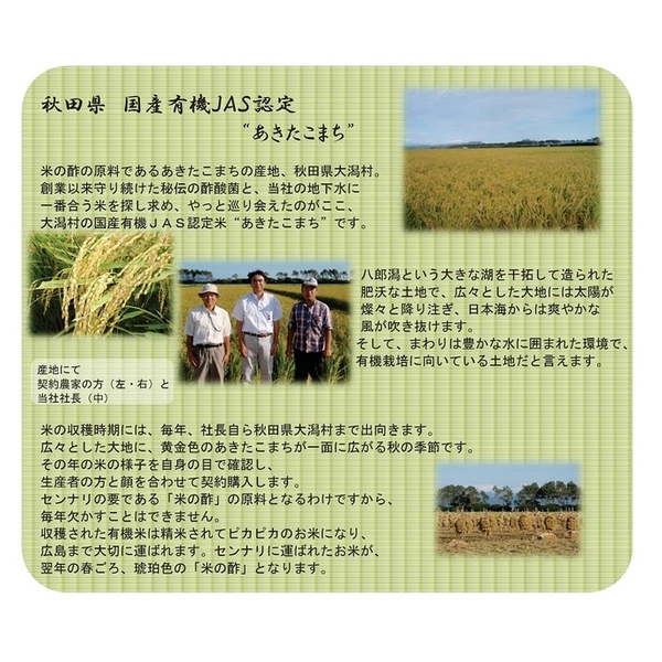 千成株式會社創立於昭和時期1927年,創業超過80年的悠久歷史,早期就堅持以古老釀造技術生產100%米醋,在昭和20-30年代,日本人就為了追求美味的好醋,於千成的工廠周圍排隊購買,即便是在物質貧乏時期,醋也帶來對日本食品文化有極大的影響力。隨著時代的演變,飲食文化的日新月異,如今社長 大地勝史依然遵循著代代相傳的家族企業精神,美味研究所「大地」系列堅持著使用有機栽培的食材、天然地下湧泉水、古法釀造的100%米醋,絕不依賴添加物,利用獨特的新技術,搭配電腦化最新的設備工廠,以100%心意生產出安全、健康又美味的醬料,為每個家庭的餐桌上創造幸福的感動。