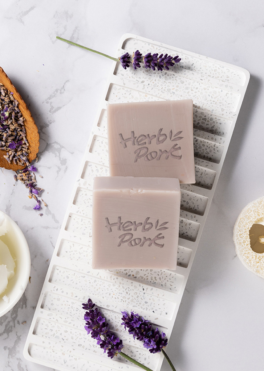 獨家使用香草豬油並添加節氣香草,以歐洲冷凝法低溫製皂,經過1200小時漫長熟成「手作香草豬油薰衣草橄欖皂」