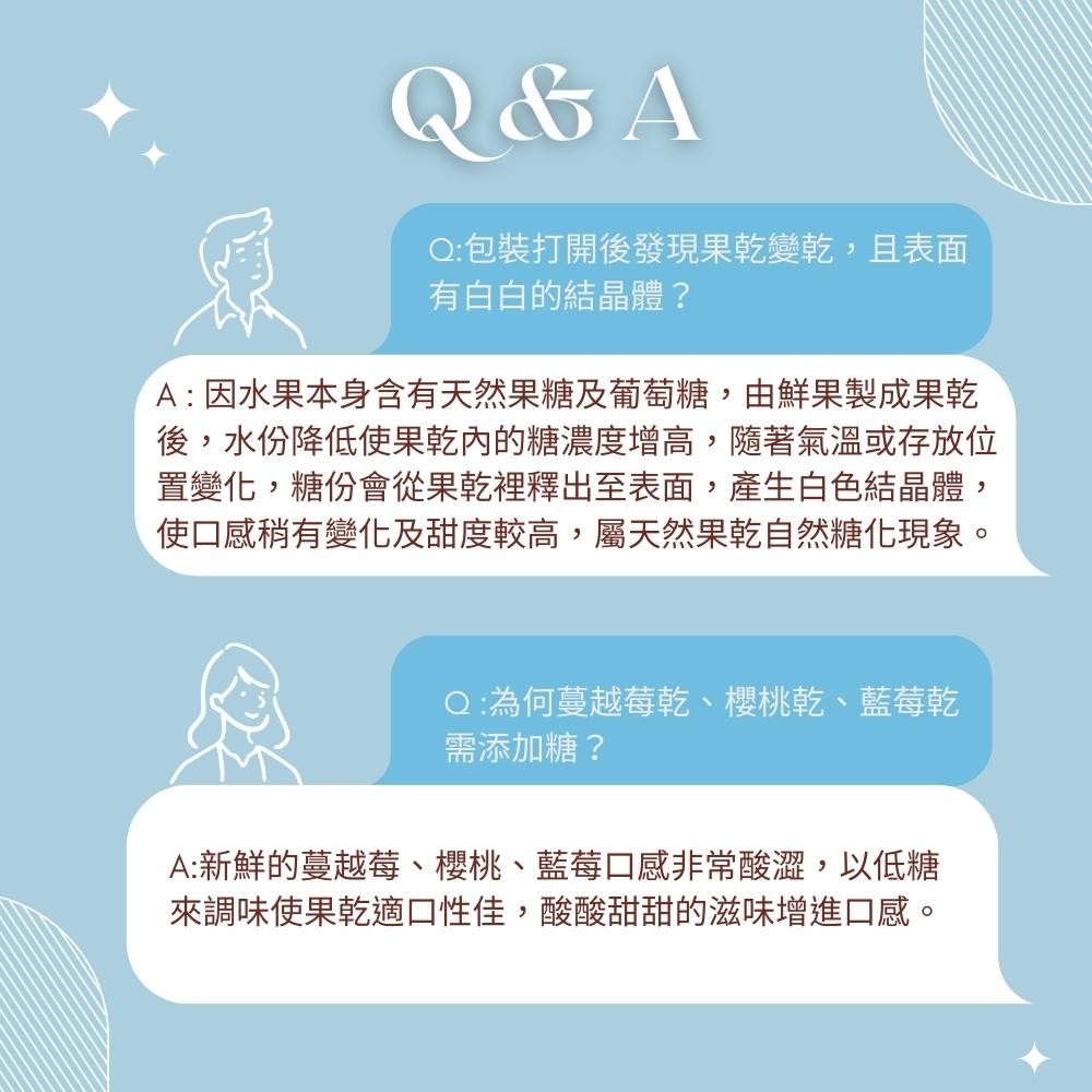 ● 以低糖浸漬增加果乾的口感,酸甜順口,不甜膩,果肉香Q獨特,天然營養又好吃。
