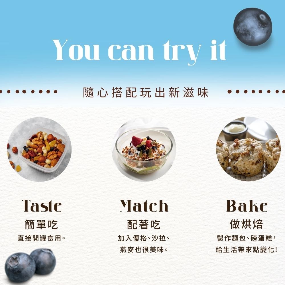 ● 以未經壓榨果汁的整顆新鮮藍莓製成,無防腐劑及人工添加物、無硫化處理。