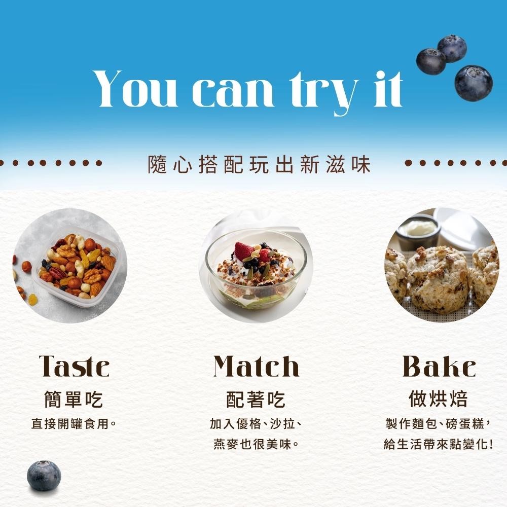 ● 以未經壓榨果汁的整顆新鮮藍莓製成,無防腐劑及人工添加物、無硫化處理。