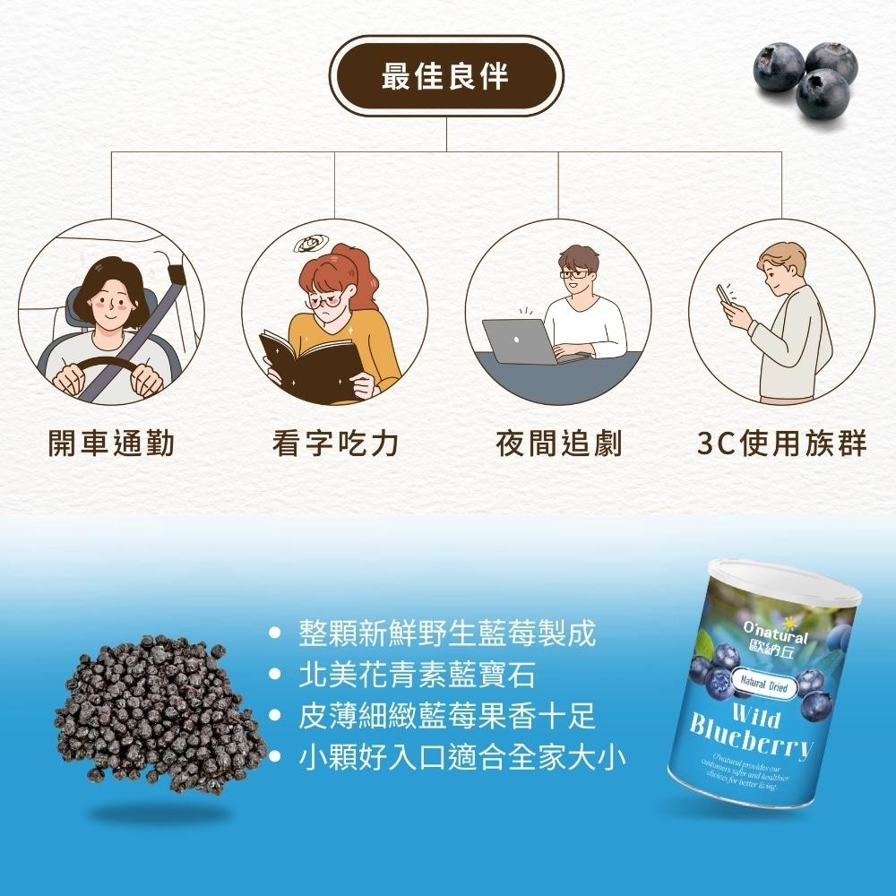 歐納丘純天然野生藍莓顏色較深、果肉細膩、有更豐富的藍莓味、酸甜適度,又具有香爽宜人的香氣。