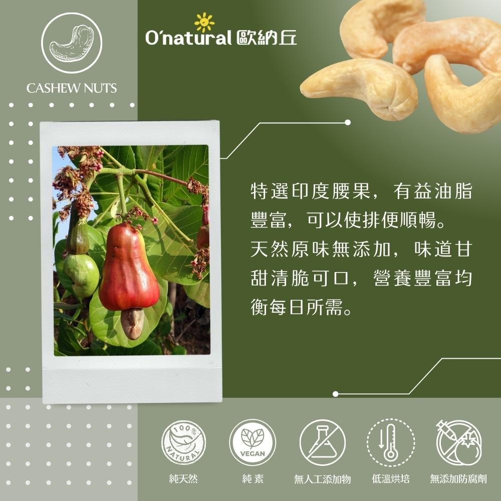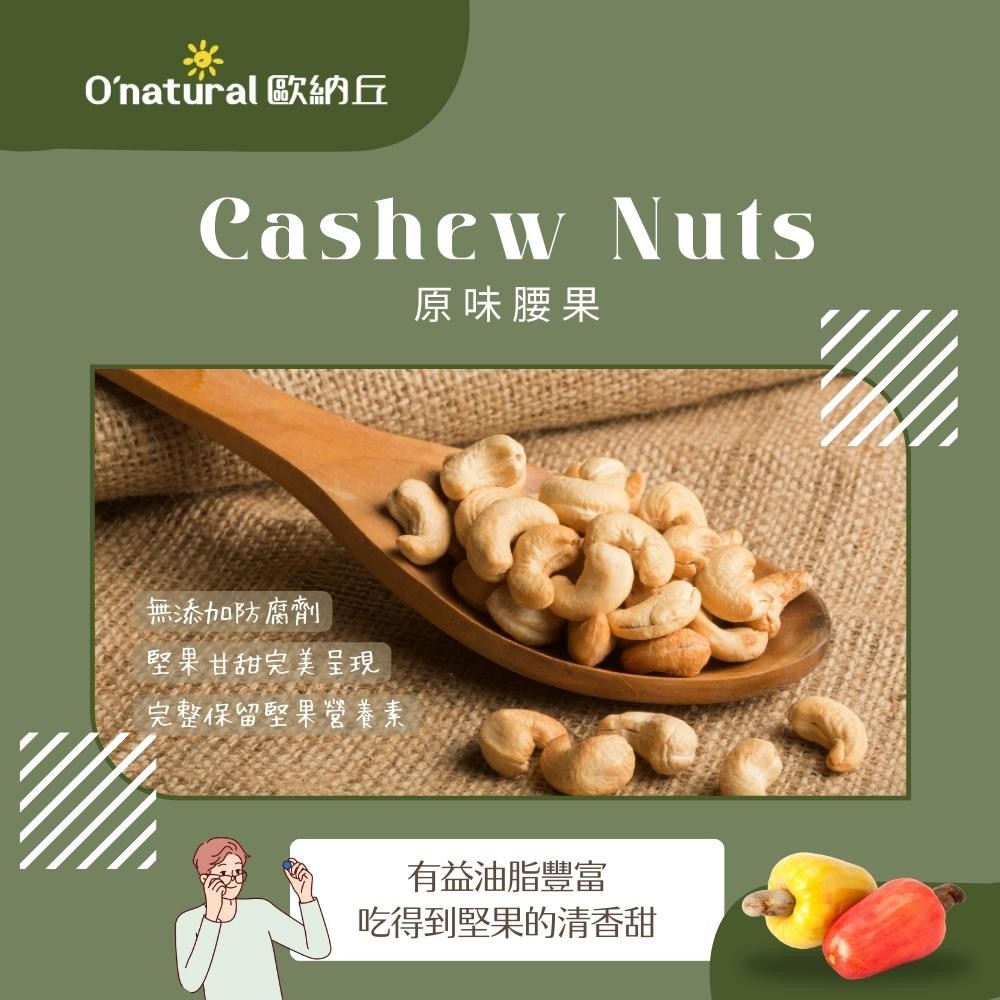 腰果為「世界四大堅果」之一。歐納丘純天然腰果(原味)特選印度腰果,含豐富的健康油脂,幫助排便順暢。在印地安人眼裡,視腰果為天賜的糧食。