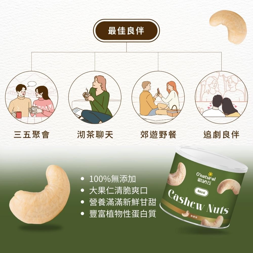 歐納丘純天然腰果(原味)味道甘甜,清脆可口,營養豐富,健康無負擔。