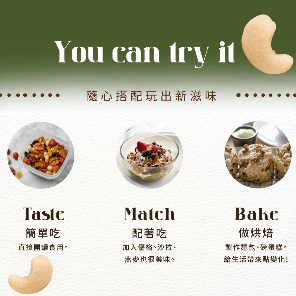 輕烘焙、非油榨,無調味,保留堅果的營養價值及原味口感,讓您吃的健康無負擔!