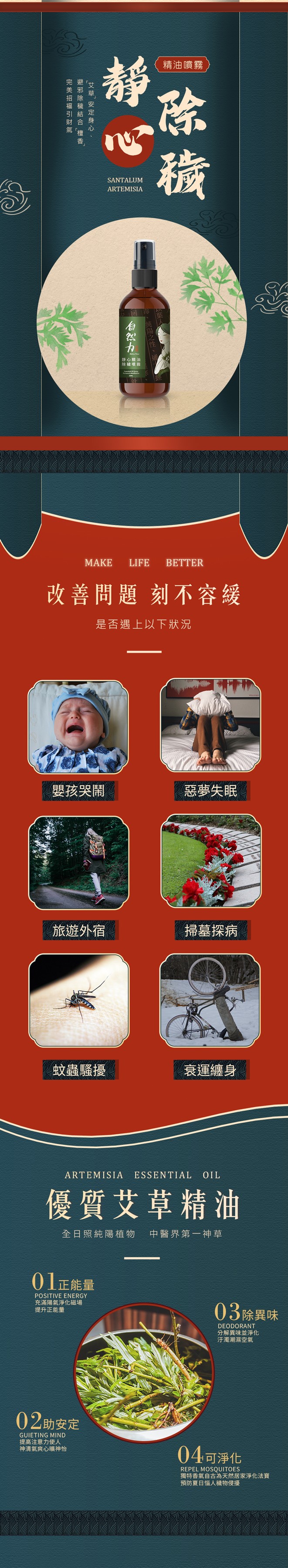 ◎成份:艾草精油 / 檀香精油 / 穀類酒精 / 純水